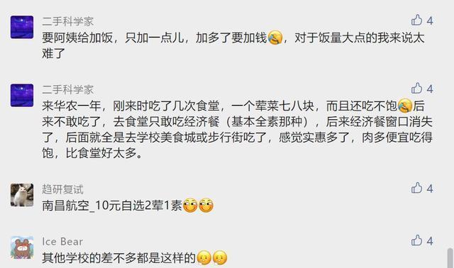 可是这也只能想想了,毕竟领导也没有这么闲,但我们还是希望华中农大食堂能够恢复之前的价格,让学生们能更容易吃到香喷喷的饭菜。